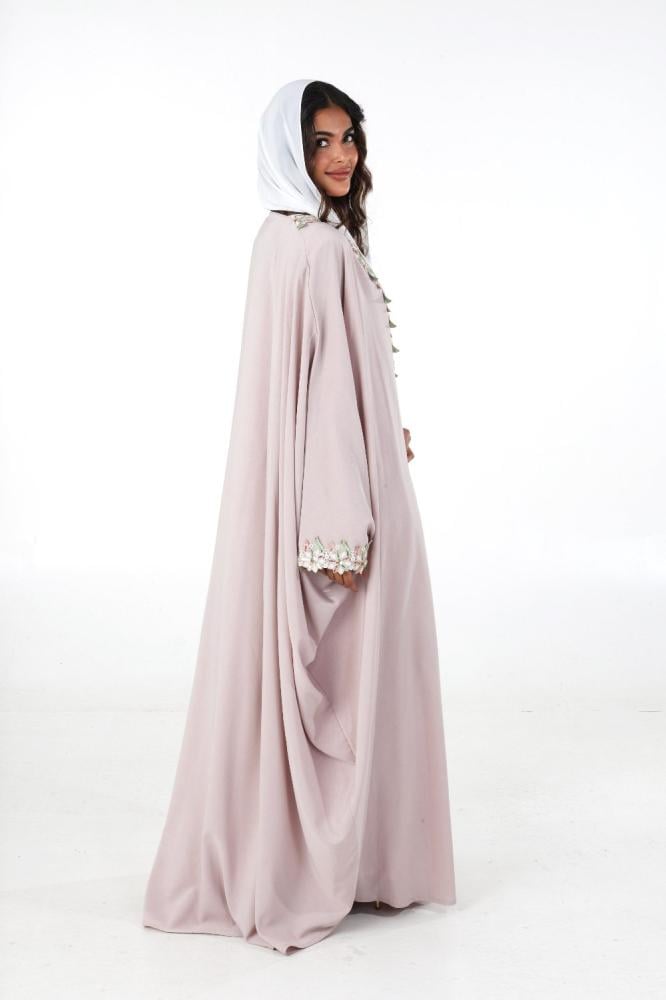 ✨ اللون الوردي الهادئ يضيف لمسة أنثوية راقية لإطلالتك، بينما يمنحك التصميم البشت المميز مظهراً عصريًا يناسب مختلف المناسبات، سواء للطلعات اليومية أو المناسبات البسيطة.